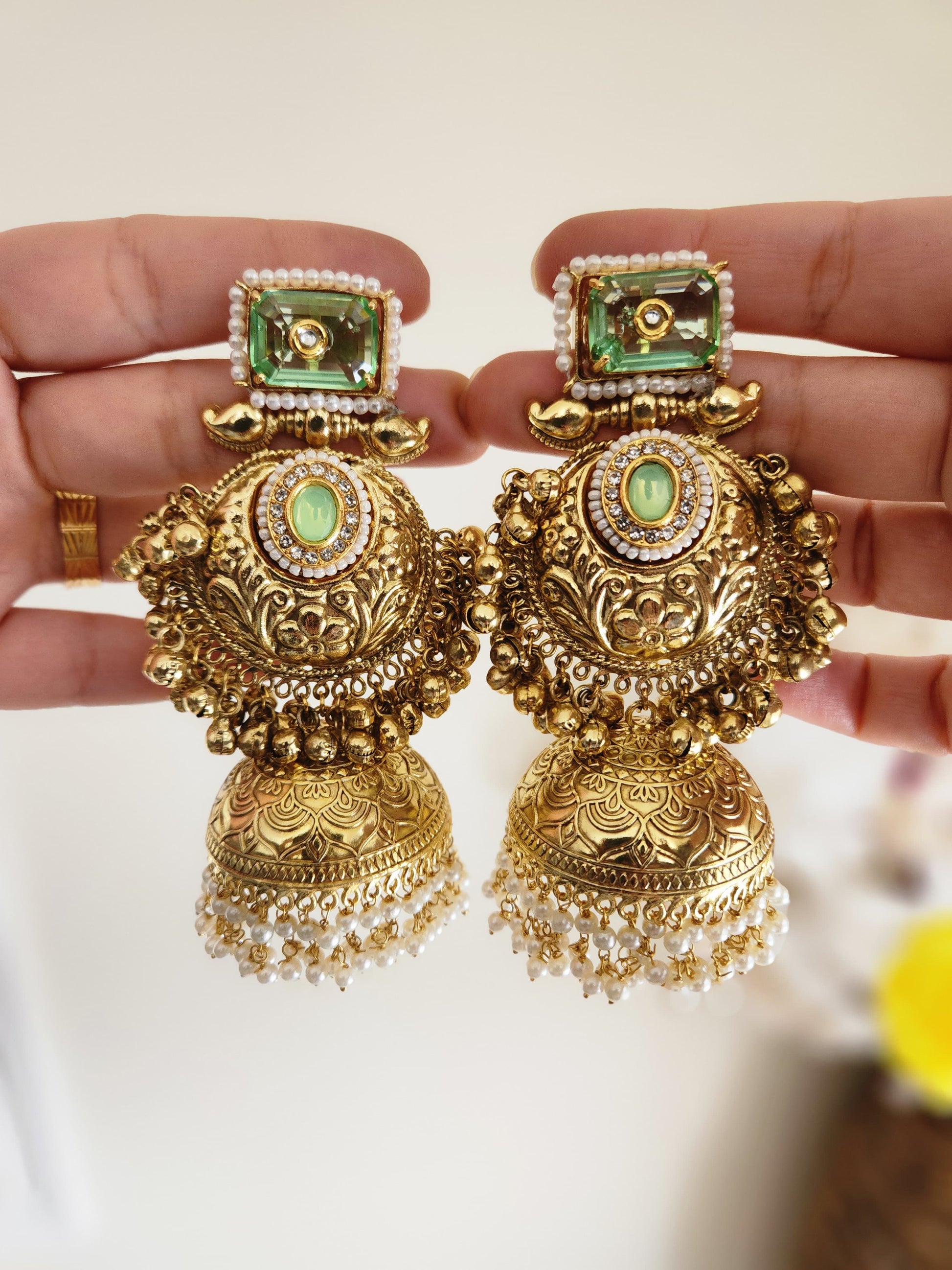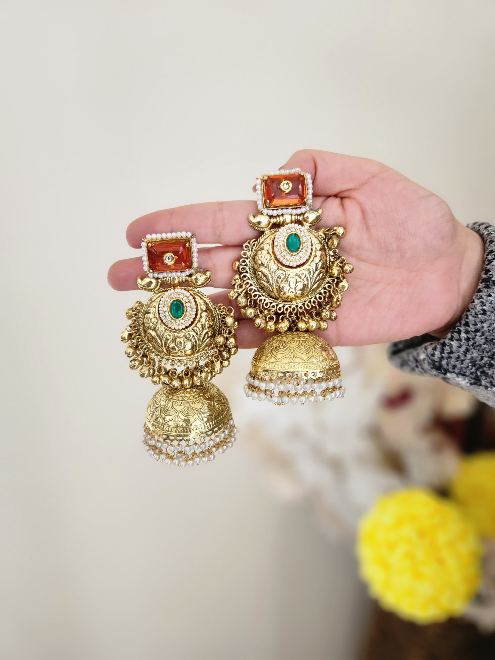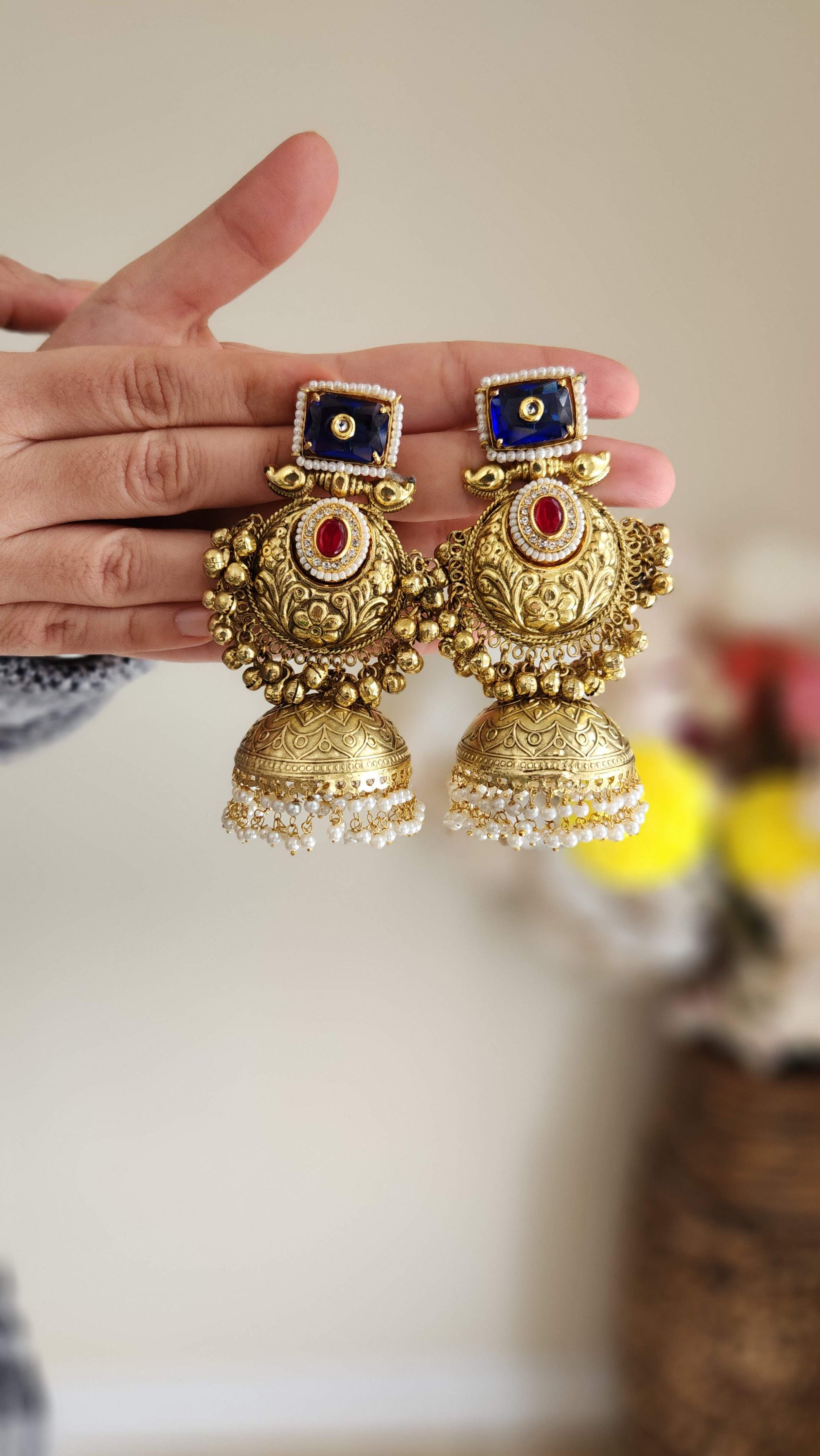 Brass based gold finished, with colored stones